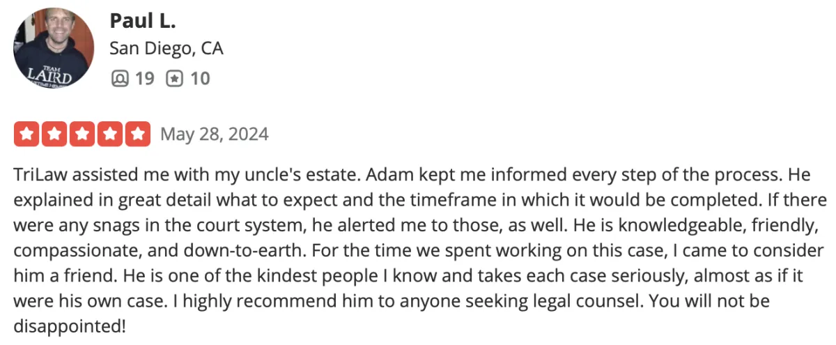 Simplify the probate process with TRILAW. Our streamlined service saves you time and effort by guiding you through the complexities of probate smoothly. From document preparation to estate distribution, we're here to support you every step of the way. Trust TRILAW for a hassle-free probate experience.